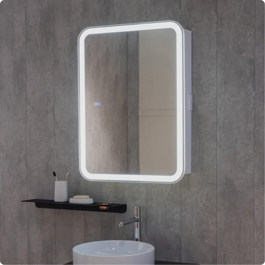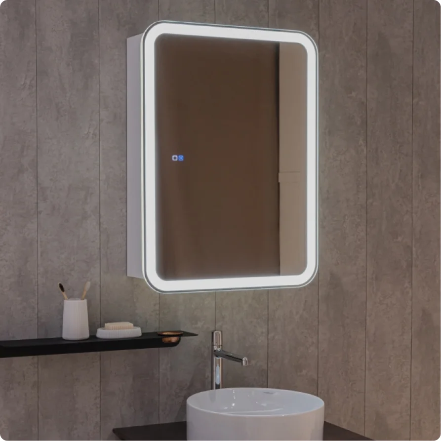 Аннотация: Зеркало-шкаф — воплощение «умного» дизайна, соединяющего эстетическое наслаждение и функциональность. Чёткие линии сбалансированы скруглёнными углами. Такая форма смягчает «холодную» фактуру отделочной плитки и сделает интерьер ванной комнаты более уютным. «Дружелюбный» дизайн подчёркивается при включении подсветки, регулируемой сенсорным выключателем с функцией диммера.