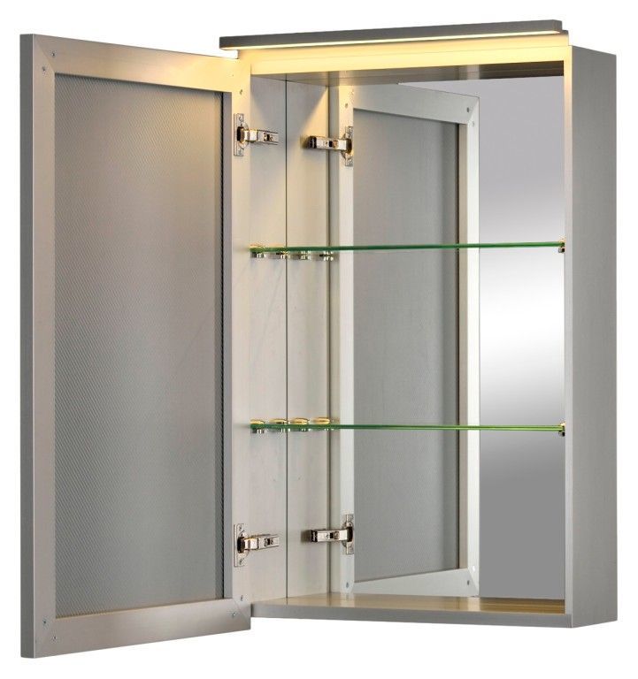 Зеркальный шкаф De Aqua Алюминиум 50 261749 серебро обеспечит комфорт при ежедневных утренних и вечерних гигиенических процедур. В своей аскетичности внешнего вида эта модель позволит использовать возможности планировки по-максимуму. Особенно если учесть размеры изделия: ширину 500 мм, глубину 140 мм, высоту 765 мм. Алюминий использован для изготовления корпуса зеркального шкафа. Зеркальное полотно скрывает за собой довольно вместительный шкаф. Теперь найдется место для размещения необходимых гигиенических средств, косметики и даже лекарств.