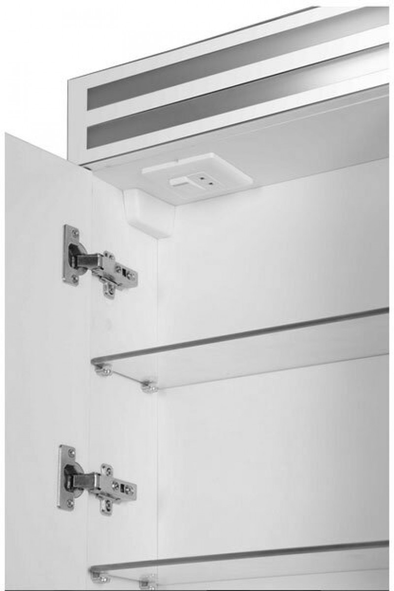 Зеркало для ванной комнаты De Aqua Эколь 90 (цвет - белый, с люминесцентными лампами) составляет коллекцию функциональных зеркал, таящих в себе сюрприз «зеркало+шкаф». Для любителей рационального подхода к использованию вещей и обладателей ванных комнат скромных размеров любая из моделей коллекции станет настоящей находкой. За плавно открывающимися дверцами можно спрятать кучу полезных мелочей, которая необходима в ванной комнате. Это и эстетично, и гигиенично. Механизм доводчика сохранит интимность обстановки ванной при открывании и закрывании распашной дверцы шкафчика, а зеркало, освещаемое люминесцентными лампами, визуально сделает пространство больше.