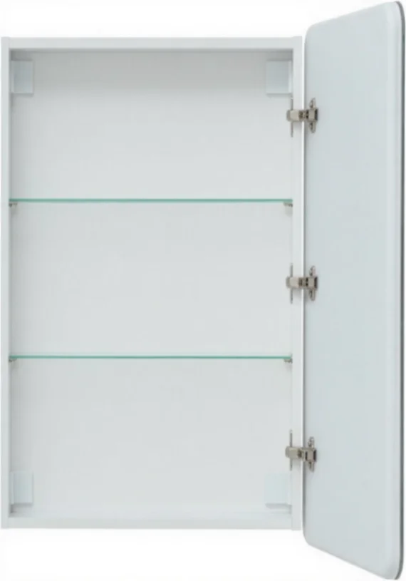 Корпус шкафа выполнен из влагостойкого белого ЛДСП. Он надежно защищен от воздействия влаги и пара. Это гарантирует долгий срок службы даже в условиях сырости. Внутри шкафа расположены съемные полки из прочного стекла толщиной 4 мм. Вы можете легко настроить внутреннее пространство под свои нужды.