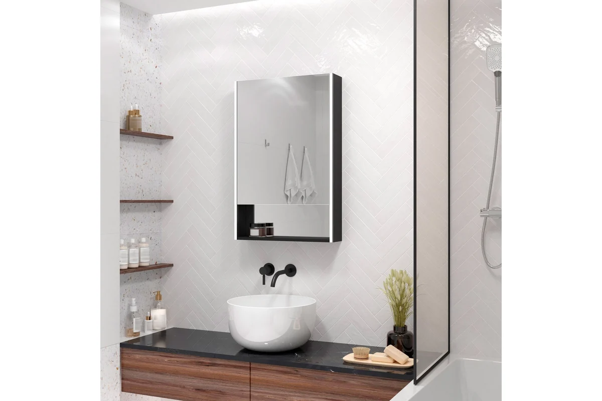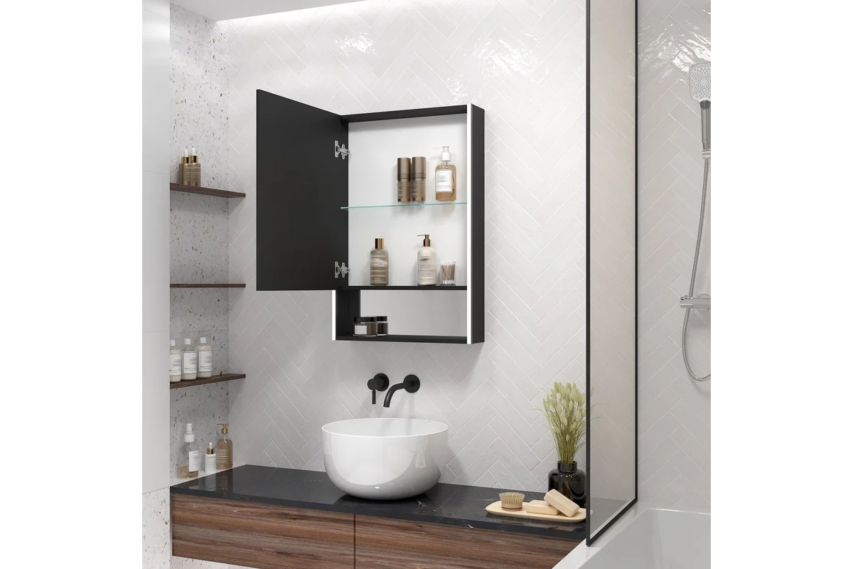 Зеркальный шкаф Art&Max Foggia L AM-Fog-600-800-1D-L-DS-F-Nero 600*800 мм (LED) чёрный матовый