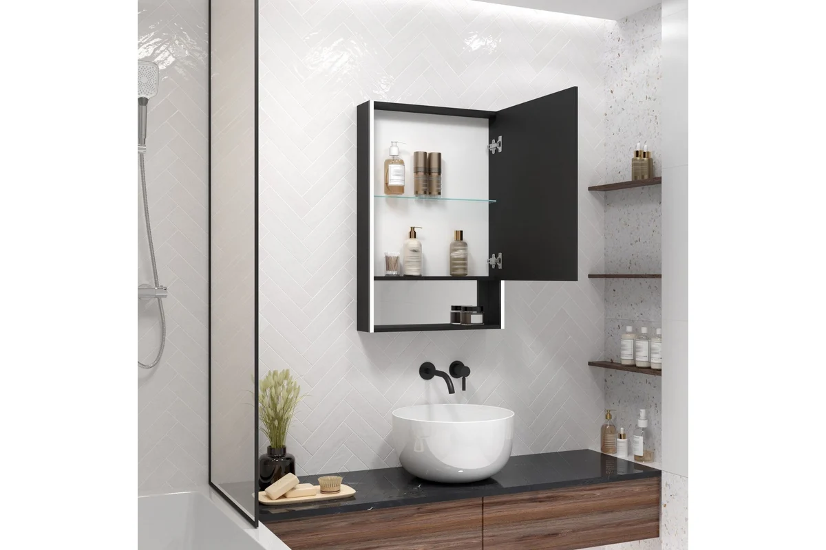 Зеркальный шкаф Art&Max Foggia R AM-Fog-600-800-1D-R-DS-F-Nero 600*800 мм (LED) чёрный матовый
