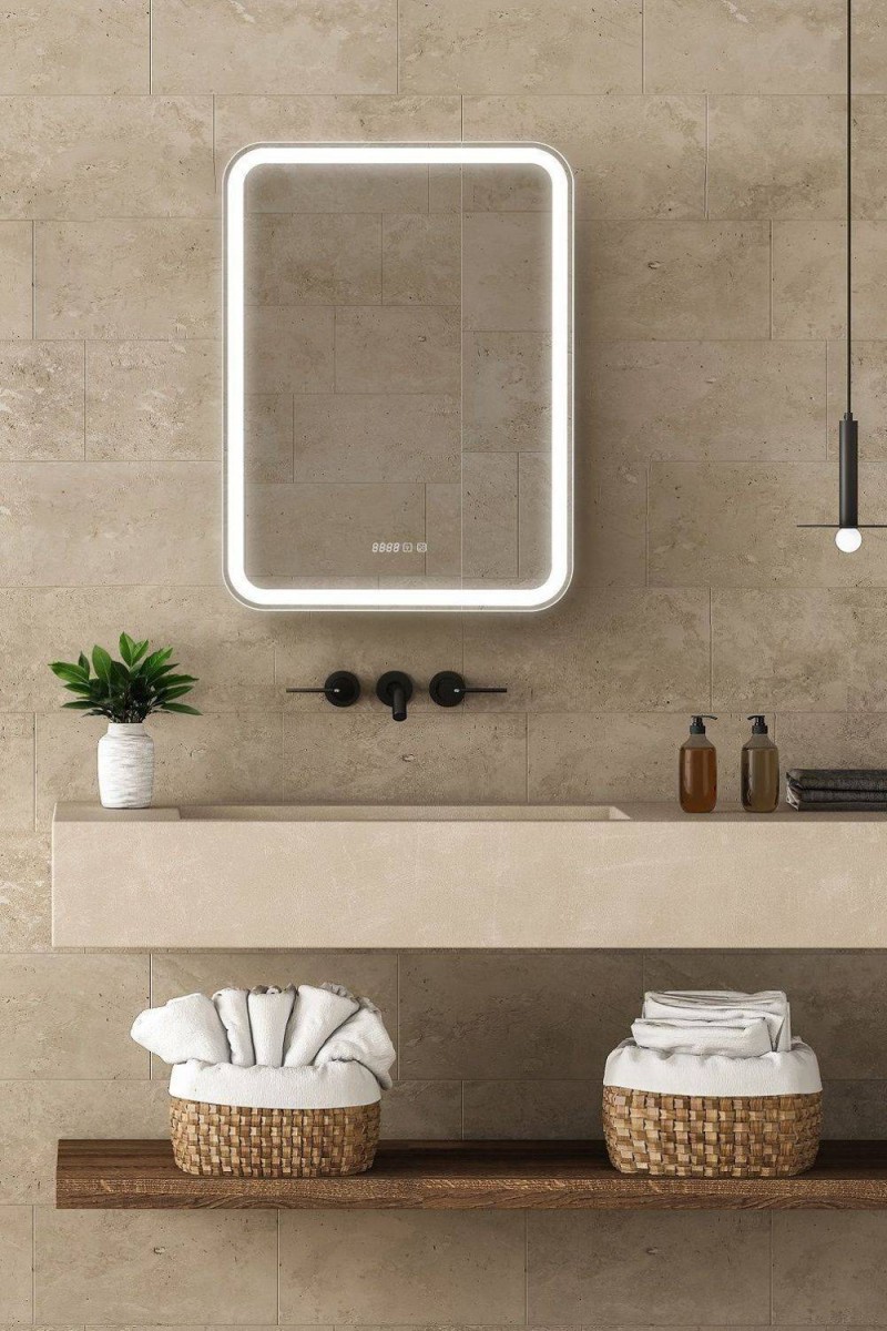 - Зеркало-шкаф, оснащенное светодиодной LED подсветкой с диммером, часами и функцией антизапотевания