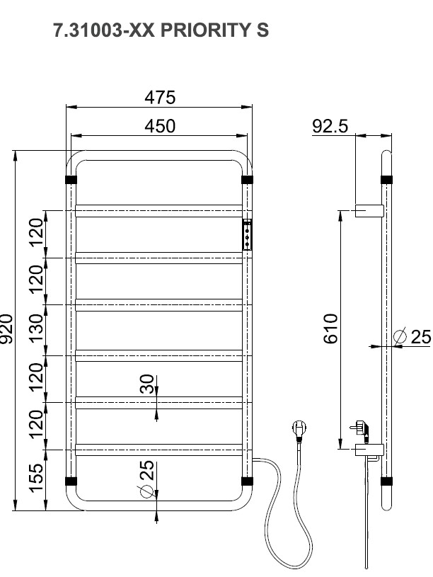 Электрический полотенцесушитель Allen Brau Priority S 7.31003-31 920*475 мм (черный матовый)