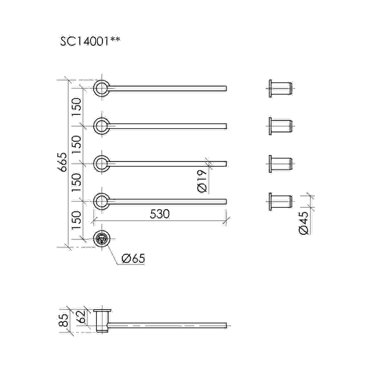 Полотенцесушитель электрический встраиваемый Линия (Linea) хром SC14001BG