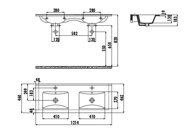 Раковина двойная Creavit Su SU121-00CB00E-0000 1214*462 мм (белый)