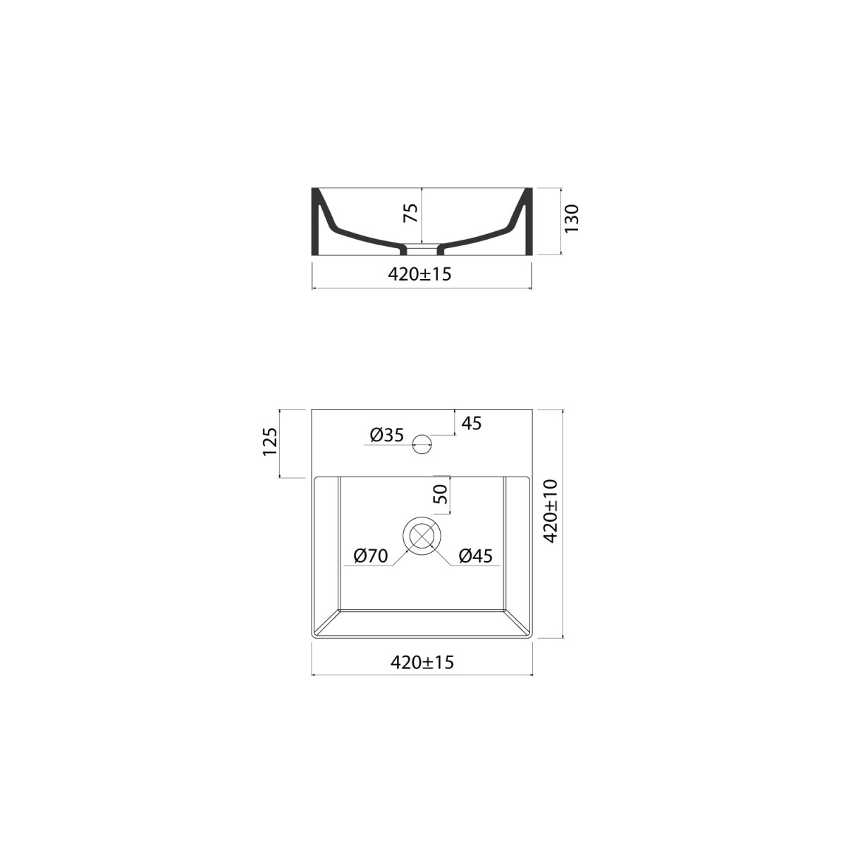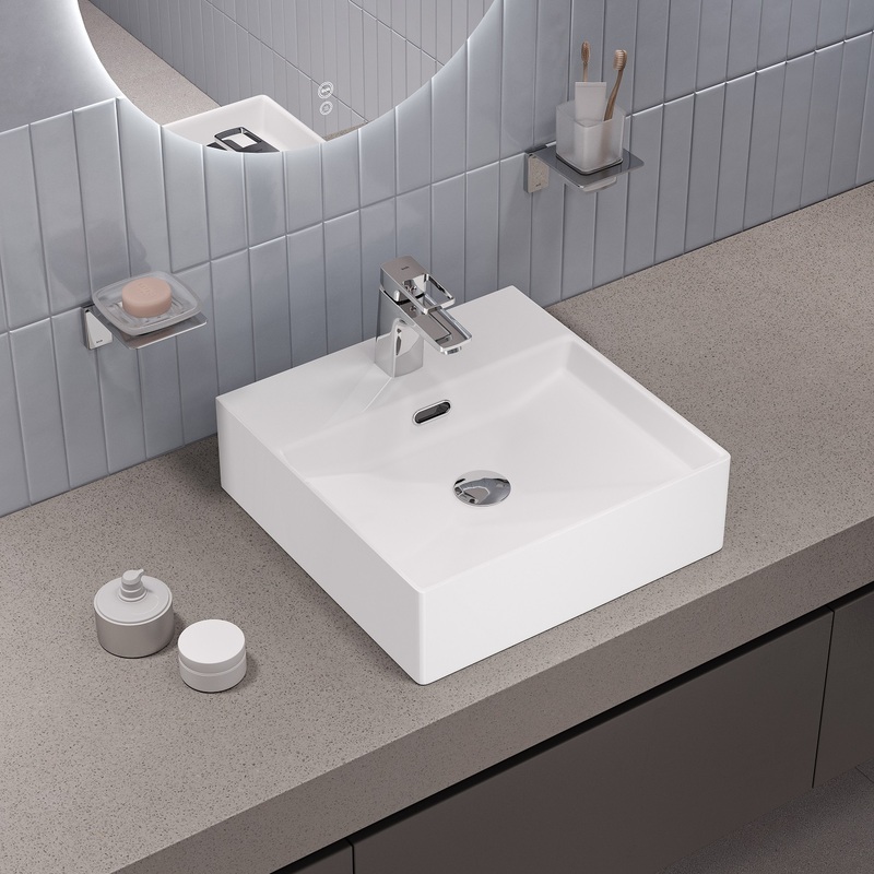 Длина изделия, мм: 420 Ширина изделия, мм: 420 Высота изделия, мм: 130 Донный клапан в комплекте: Нет Комплект крепежа умывальника к стене: Есть Основной материал: Сантехнический фарфор Наличие перелива в умывальнике: Есть Цвет изделия: Белый глянцевый Страна бренда: Россия Тип умывальника: На столешницу MOQ: 50 Форма: Квадратная со скругленными углами