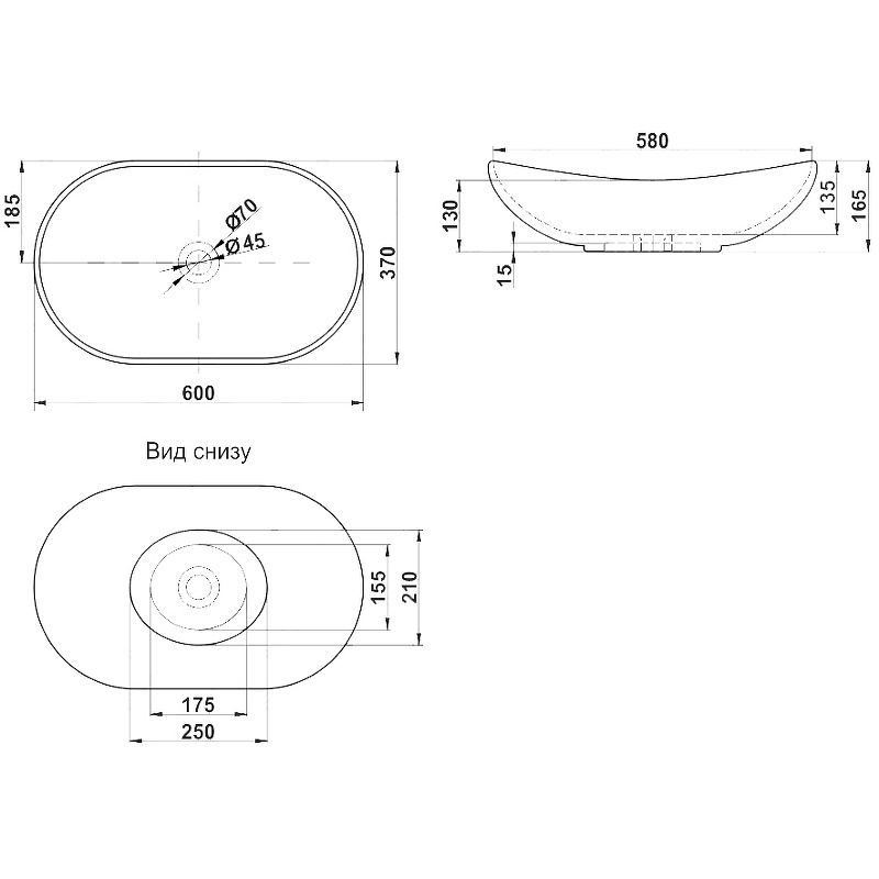 Раковина накладная Jorno MELANA 7811AMB-805 620*360 мм (чёрный матовый)