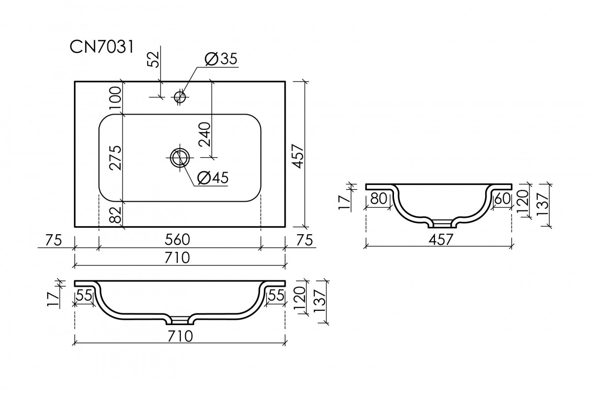 Раковина встраиваемая Ceramica Nova Grace CN7031 710*457 мм (белый)
