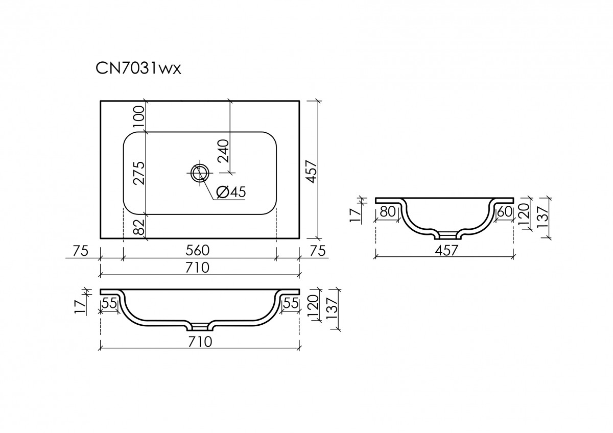Раковина встраиваемая Ceramica Nova Grace CN7031wx 710*457 мм (белый)