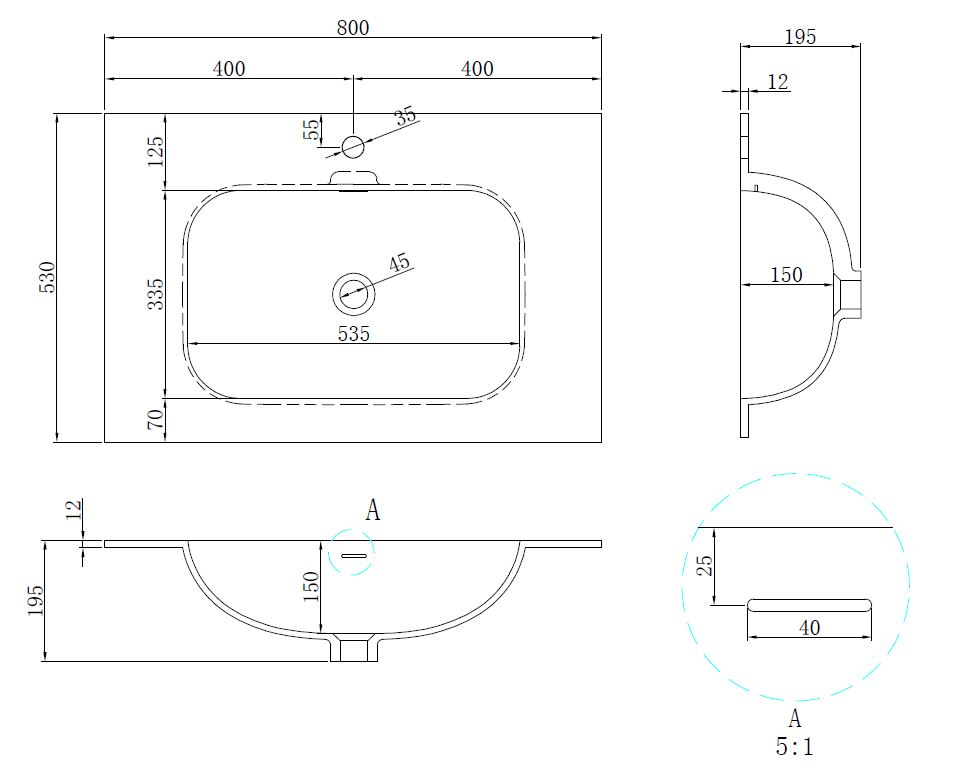 Раковина встраиваемая Vincea Elise VCB-4EL800MW 800*530 мм (белый матовый)