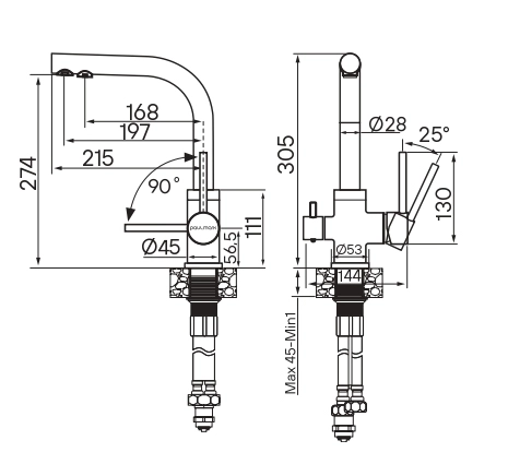 Смеситель для кухни Paulmark Essen Es213011-AN антрацит от производителя сантехники Paulmark. Монтаж кухонного смесителя на мойку имеет преимущества, связанные с удобством использования и функциональностью. Однорычажный механизм прост в управлении, регулируя напор и температуру воды одной рукой. Чёрный цвет выглядит стильно и становится ярким акцентом в современных помещениях. Латунный материал устойчив к коррозии и долговечен, что делает его надежным выбором. Матовое покрытие меньше показывает отпечатки пальцев и водяные разводы, упрощая уход за смесителем. Поворотный излив расширяет функциональность, позволяя использовать смеситель в разных местах. Фильтр для питьевой воды очищает воду, делая её безопасной для питья прямо из смесителя. Смеситель для кухни Paulmark Essen Es213011-AN антрацит имеет гарантию 5 лет.