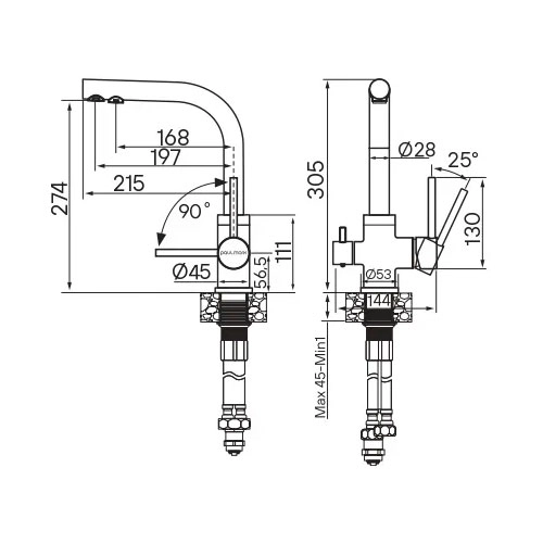 * Высота излива: 274/272 мм