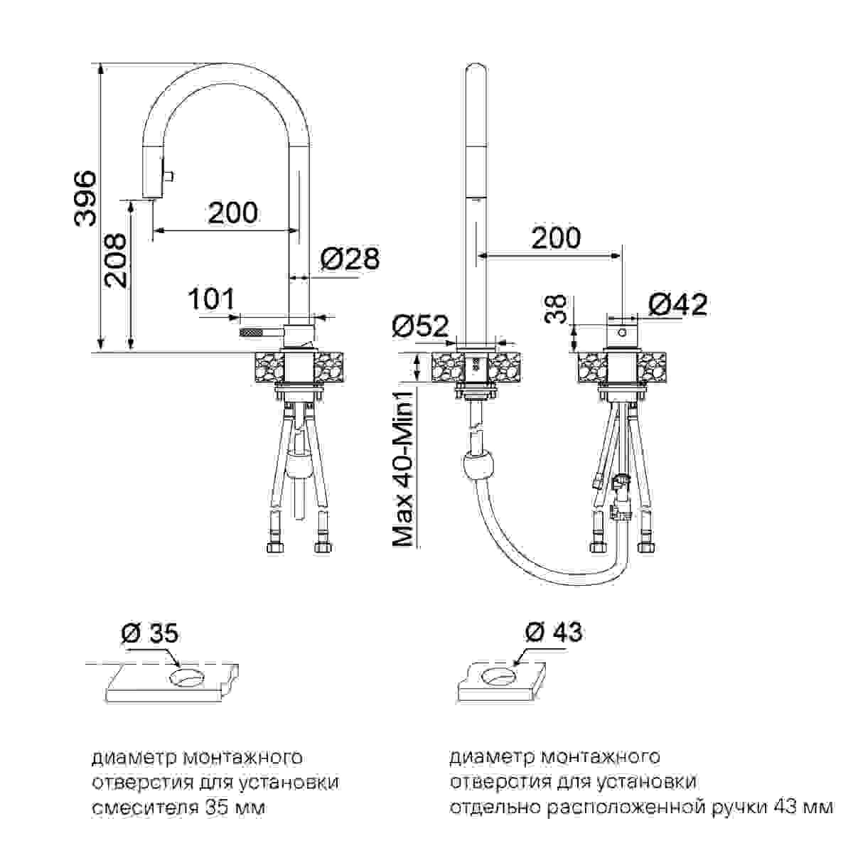 ● Диаметр монтажного отверстия для рычага: 43 мм