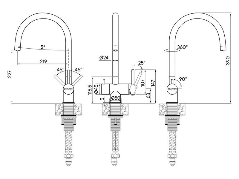 - Поворот излива: 360°