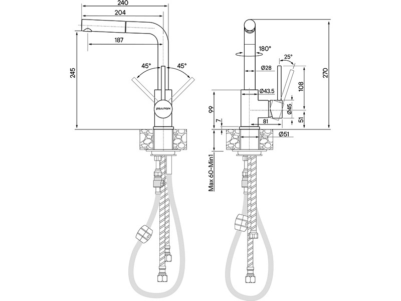 Смеситель для кухни Paulmark Kassel Ka214311-AN с выдвижным шлангом. Цвет-антрацит. Комплектация: смеситель, выдвижной шланг, подводка, крепление