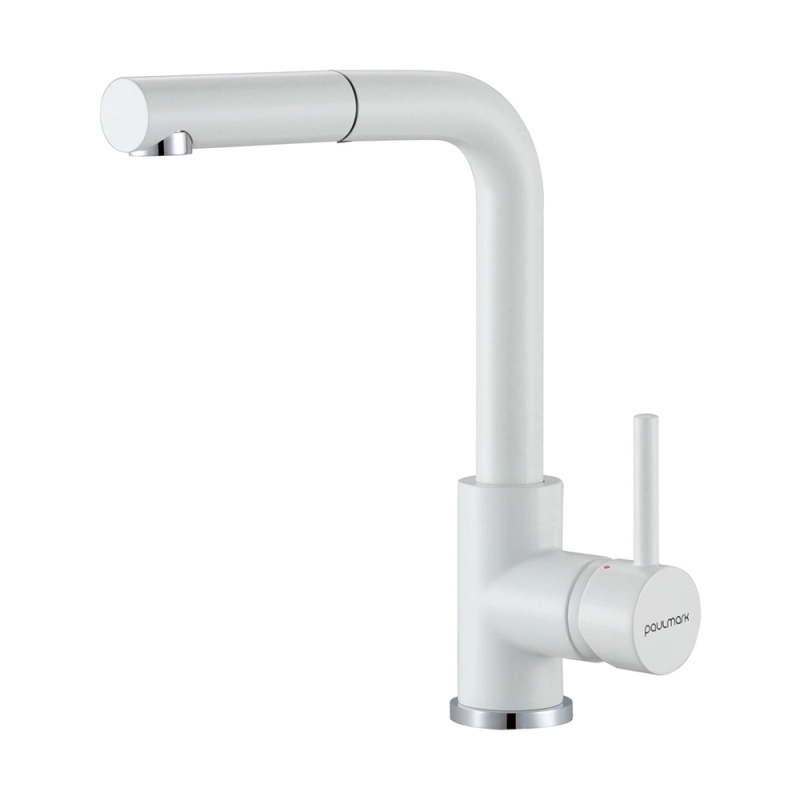 Смеситель для кухни Paulmark Kassel Ka214311-WH. Цвет-белый матовый. Комплектация: смеситель, выдвижной шланг, подводка, крепление