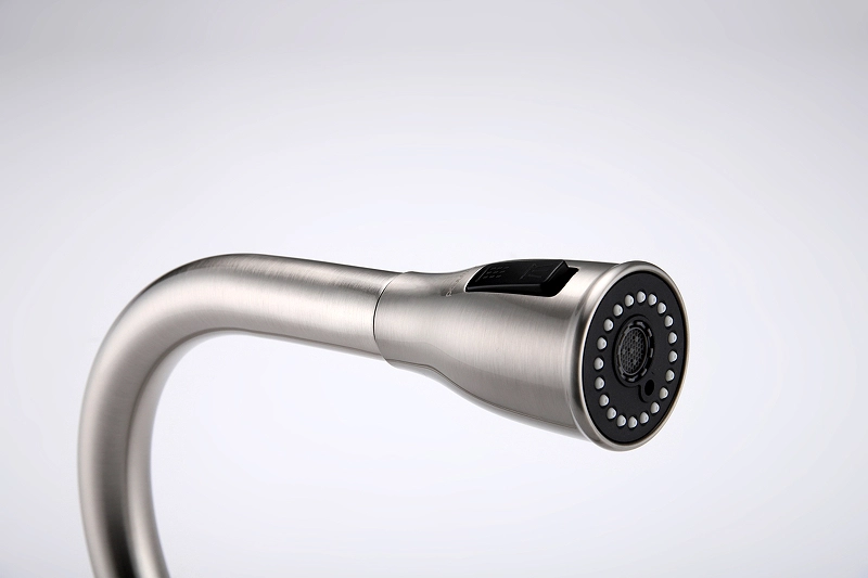 Смеситель для кухни Paulmark Lange La214212-BS. Цвет-сталь. Излив: выдвижной, гибкий, поворотный. Возможность подключения системы фильтрации питьевой воды. Функции струя и душ. Комплектация: смеситель, гибкая подводка для воды, 50 см, усиленный комплект креплений, выход для подключения системы фильтрации воды, переходник цанга для подключения фильтра