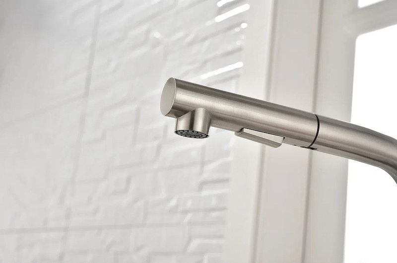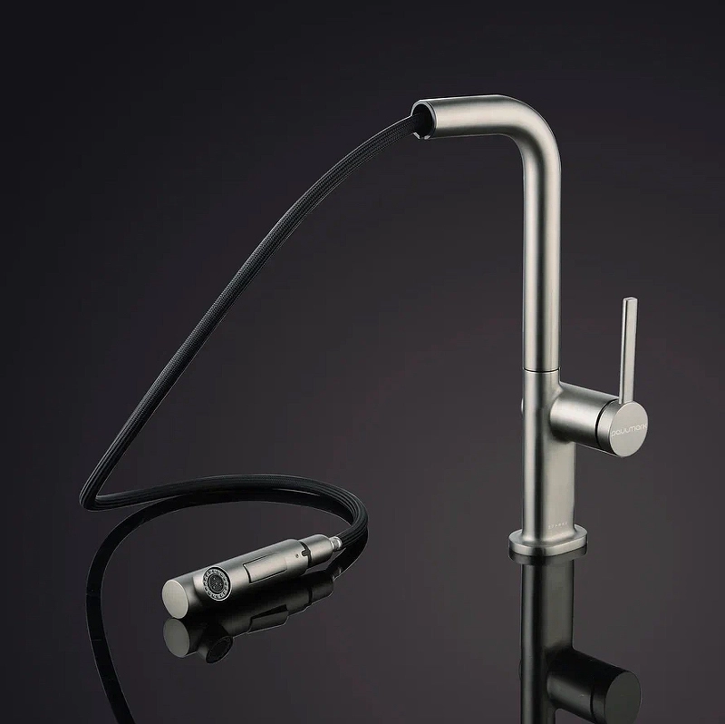Смеситель для кухни Paulmark Neo Ne214419-BS. Цвет-брашированная сталь. Излив поворотный. Функции: струя, душ. Комплектация: смеситель, гибкая подводка 40 см, усиленный комплект крепления