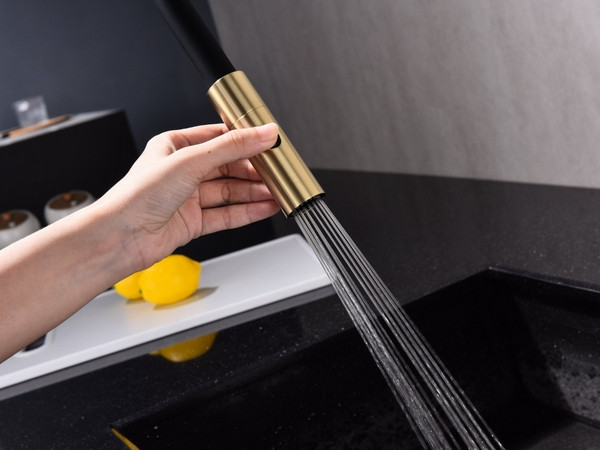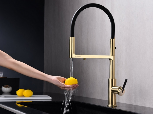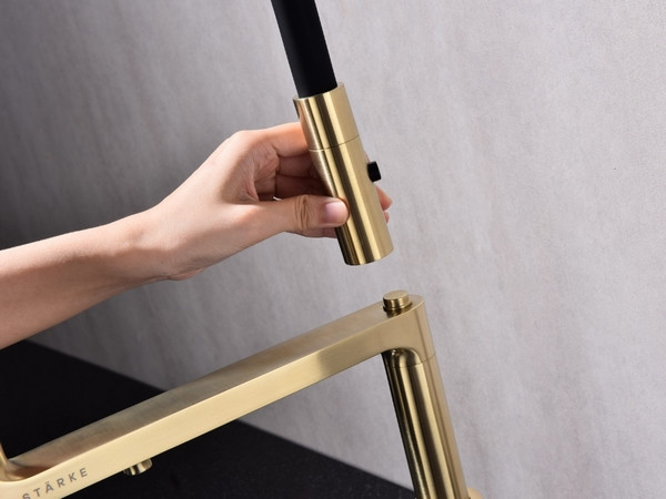 Смеситель для кухни Paulmark Tornado To213402-LG от производителя сантехники Paulmark. Монтаж кухонного смесителя на мойку имеет преимущества, связанные с удобством использования и функциональностью. Однорычажный механизм прост в управлении, регулируя напор и температуру воды одной рукой. Чёрный цвет выглядит стильно и становится ярким акцентом в современных помещениях. - Золотой цвет придает ванной роскошный и элегантный вид, подчеркивая изысканный стиль. Латунный материал устойчив к коррозии и долговечен, что делает его надежным выбором. Матовое покрытие меньше показывает отпечатки пальцев и водяные разводы, упрощая уход за смесителем. Удобный гибкий излив для направления струи воды в нужное место. Поворотный излив расширяет функциональность, позволяя использовать смеситель в разных местах. Фильтр для питьевой воды очищает воду, делая её безопасной для питья прямо из смесителя. Смеситель для кухни Paulmark Tornado To213402-LG имеет гарантию 5 лет.