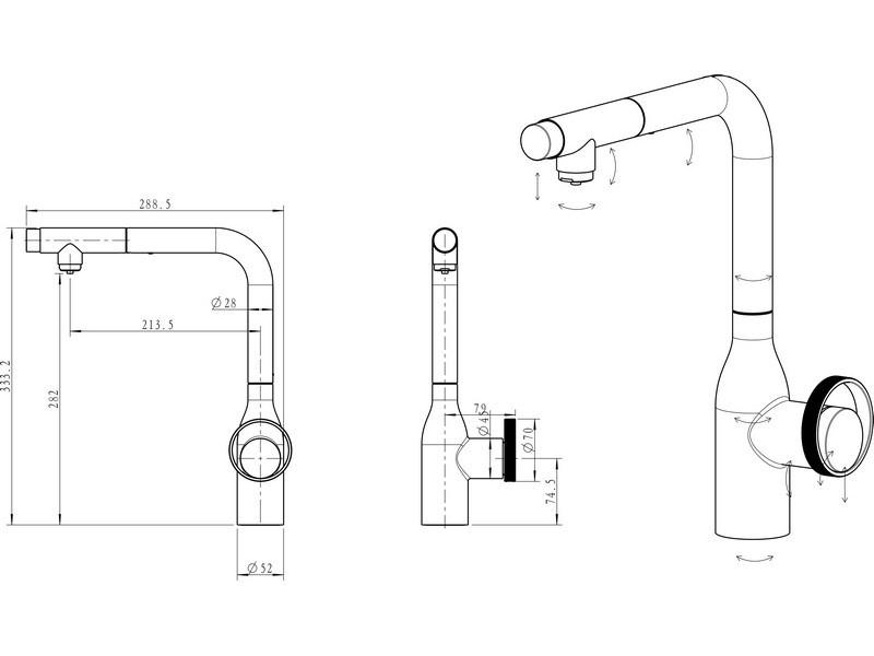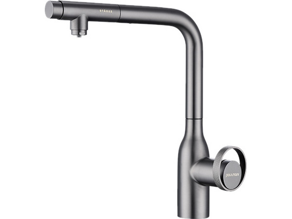 Смеситель для кухни Paulmark Urban Ur213104-GM. Цвет-вороненая сталь. Имеет отдельный канал для питьевой воды. Переключение режимов осуществляется с помощью удобной и эргономично расположенной кнопки. Выдвижная часть излива способна обеспечить максимально комфортную эксплуатацию и экономный расход воды. Комплектация: смеситель, гибкая подводка, крепеж