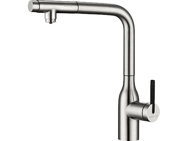 Смеситель для кухни Paulmark Viper Vi213105-BS. Цвет-сталь. Возможность подключения системы фильтрации питьевой воды. Отдельный выпуск для фильтрованной воды-нет. Тип монтажа-гайка. Механизм-керамический картридж. Комплектация: смеситель, гибкая подводка 40 см, усиленный комплект крепления, выход для подключения системы фильтрации питьевой воды, переходник цанга