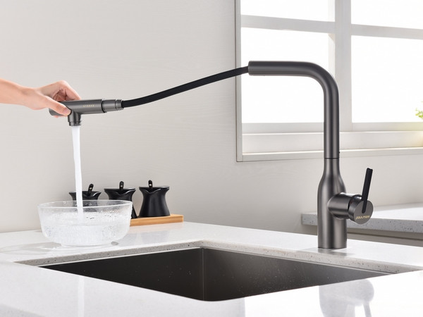 Смеситель для кухни Paulmark Viper Vi213105-GM от производителя сантехники Paulmark. Монтаж кухонного смесителя на мойку имеет преимущества, связанные с удобством использования и функциональностью. Однорычажный механизм прост в управлении, регулируя напор и температуру воды одной рукой. Хромированный цвет придает смесителю блестящий и универсальный вид, подходящий для любого интерьера. - Чёрный цвет выглядит стильно и становится ярким акцентом в современных помещениях. Латунный материал устойчив к коррозии и долговечен, что делает его надежным выбором. Матовое покрытие меньше показывает отпечатки пальцев и водяные разводы, упрощая уход за смесителем. Удобный гибкий излив для направления струи воды в нужное место. Поворотный излив расширяет функциональность, позволяя использовать смеситель в разных местах. Смеситель для кухни Paulmark Viper Vi213105-GM имеет гарантию 5 лет.