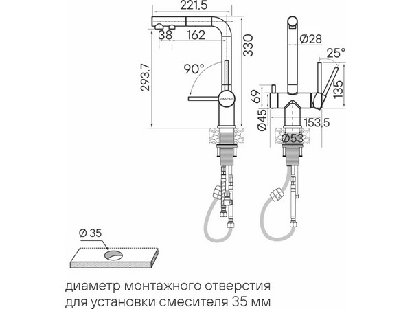 ● Гибкая подводка для воды в оплетке из нейлона 50 см