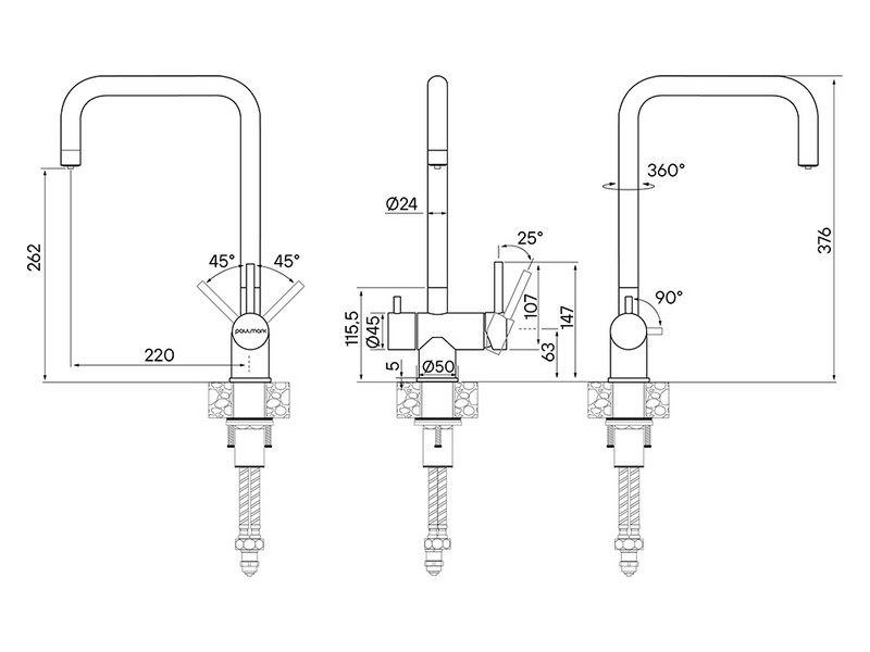 Смеситель для кухни Paulmark Wetter We213030-AN антрацит от производителя сантехники Paulmark. Монтаж кухонного смесителя на мойку имеет преимущества, связанные с удобством использования и функциональностью. Однорычажный механизм прост в управлении, регулируя напор и температуру воды одной рукой. Чёрный цвет выглядит стильно и становится ярким акцентом в современных помещениях. Матовое покрытие меньше показывает отпечатки пальцев и водяные разводы, упрощая уход за смесителем. Поворотный излив расширяет функциональность, позволяя использовать смеситель в разных местах. Фильтр для питьевой воды очищает воду, делая её безопасной для питья прямо из смесителя. Смеситель для кухни Paulmark Wetter We213030-AN антрацит имеет гарантию 5 лет.