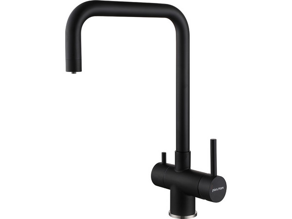 Смеситель для кухни Paulmark Wetter We213030-BLM. Цвет-черный. С возможностью подключения фильтра питьевой воды. Отдельное управление потоком питьевой воды. Покрытие PVD является наиболее экологически чистым. Комплектация: смеситель, гибкая подводка 40 см, комплект крепления, переходник цанга для подключения системы фильтрации питьевой воды, запасной аэратор