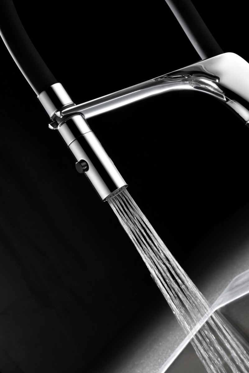 | Особенности | Поворотный гибкий шланг, два режима подачи воды |
