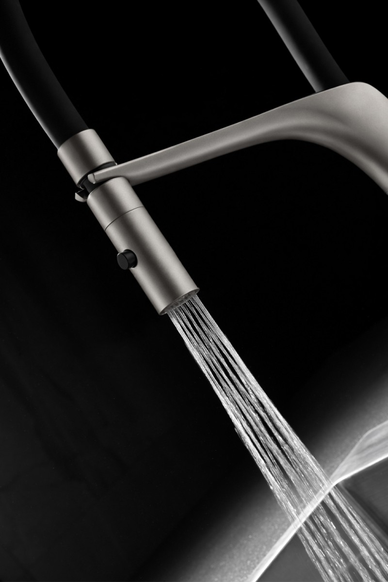 | Особенности | Поворотный гибкий шланг, два режима подачи воды |