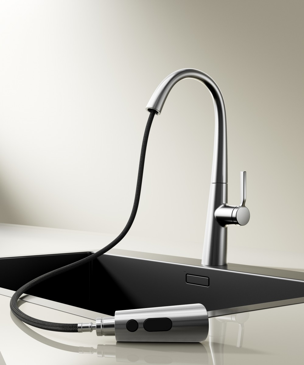 | Особенности | Выдвижной гибкий излив, три режима подачи воды |