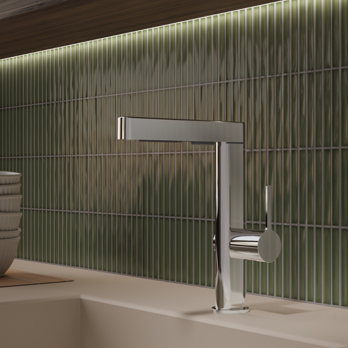 | Особенности | Выдвижной гибкий излив, два режима подачи воды |