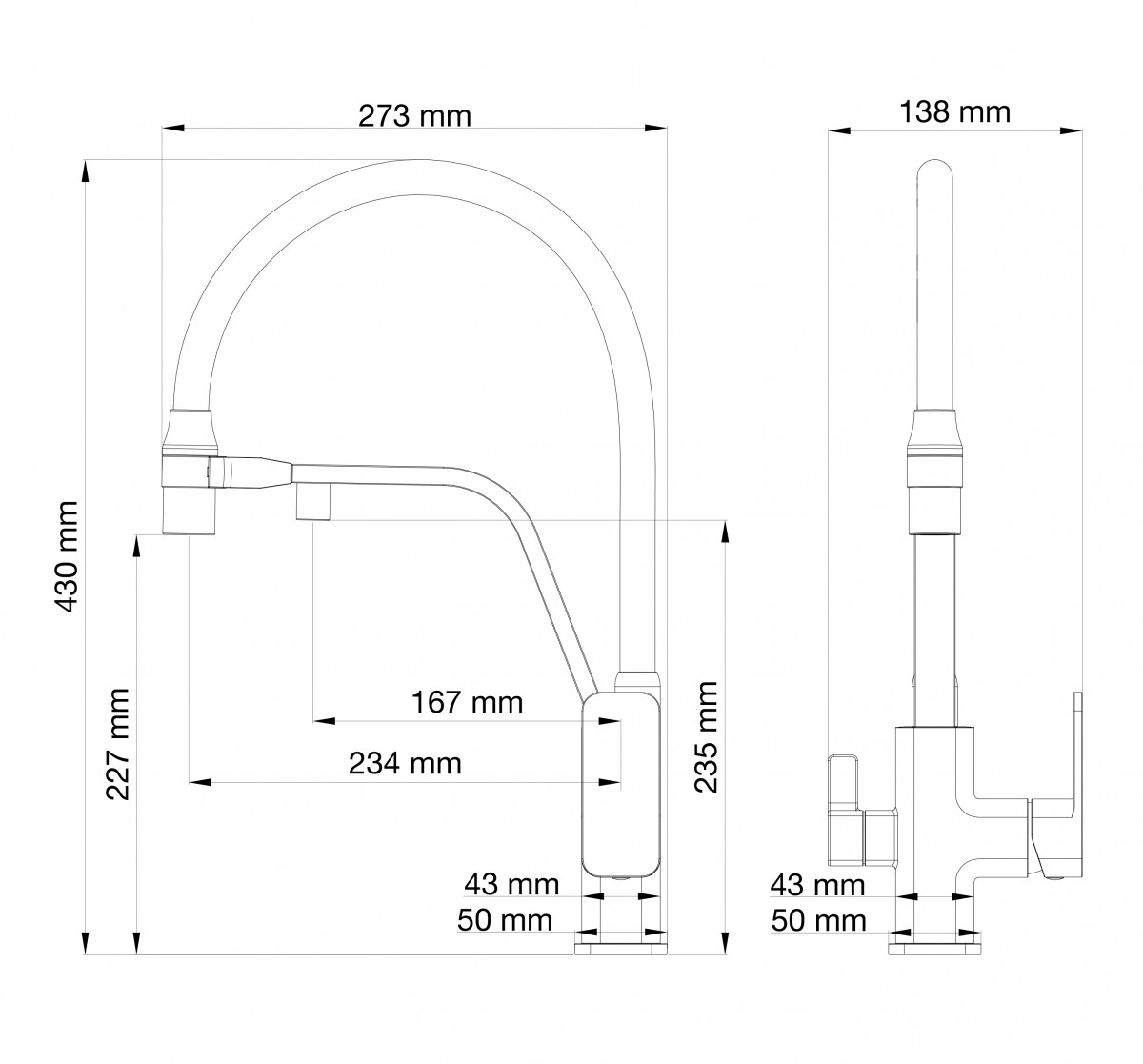 - Комплектация Смеситель / Гибкая подводка / Монтажный комплект