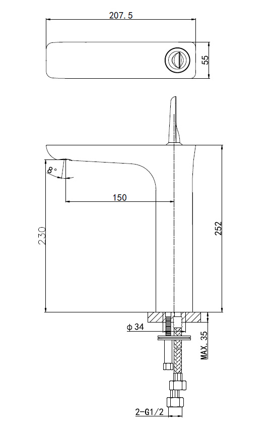 Смеситель для раковины-чаши Wonzon & Woghand SHARK WW-48B1102-CR (хром)