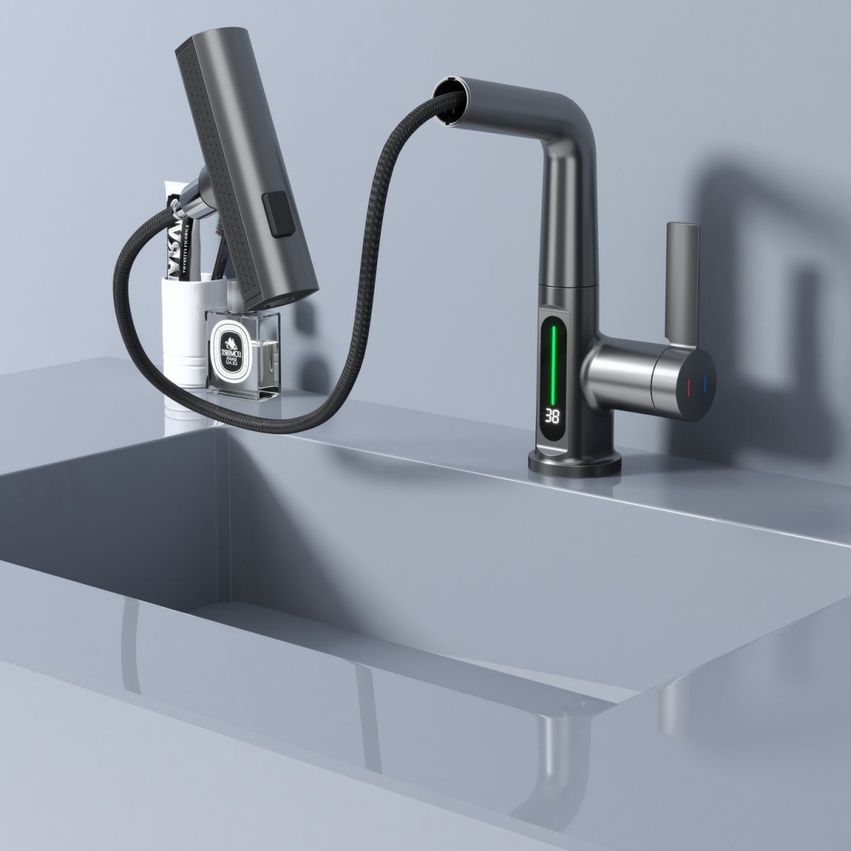 Смеситель для раковины Black&White Gravity 3027GM (оружейная сталь)