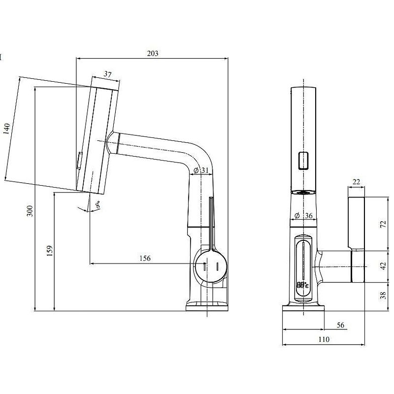 - Длина излива 15.6