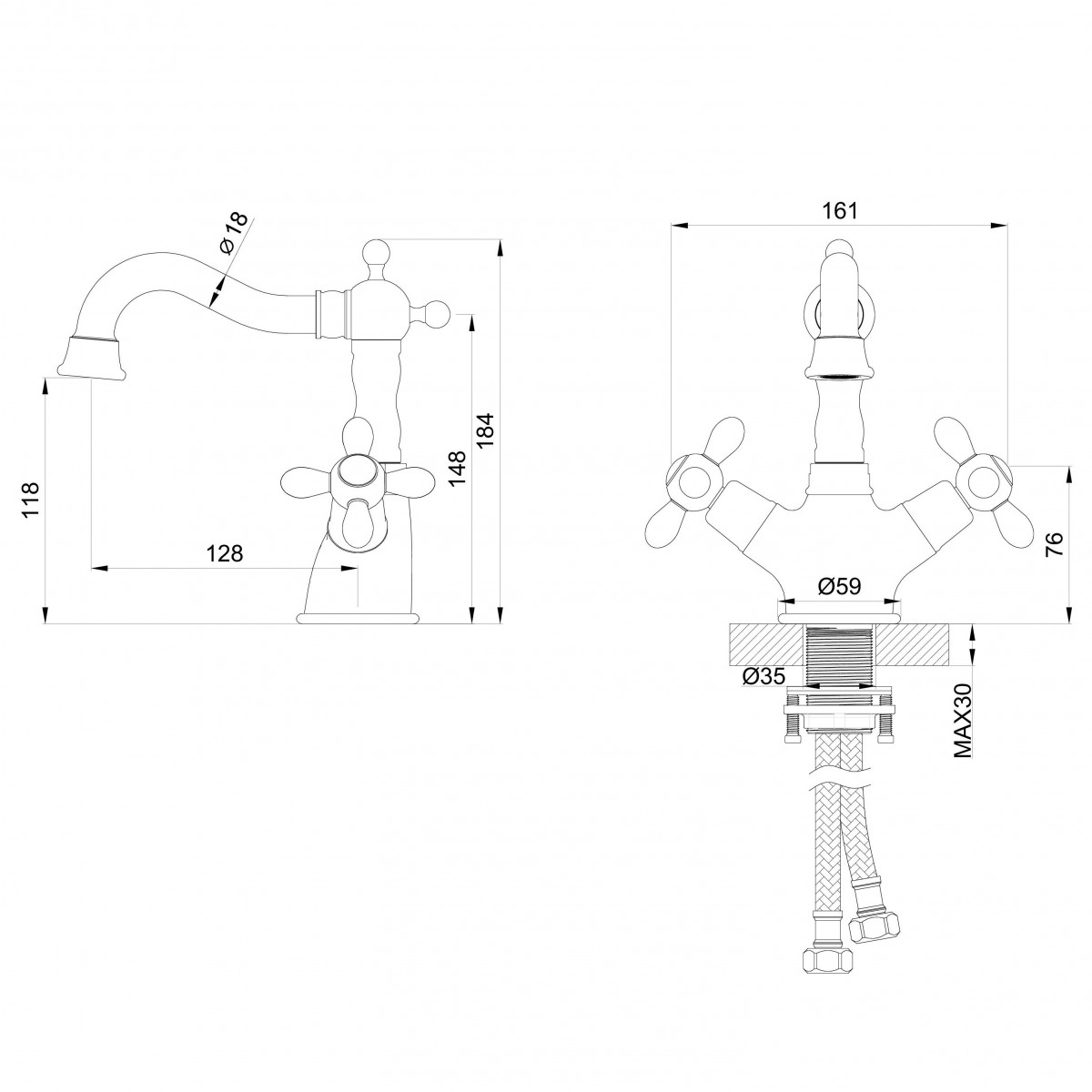 - Комплектация Смеситель / Гибкая подводка / Монтажный комплект
