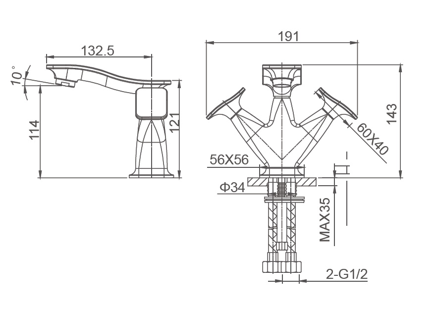 - Комплектация Смеситель / Гибкая подводка / Монтажный комплект