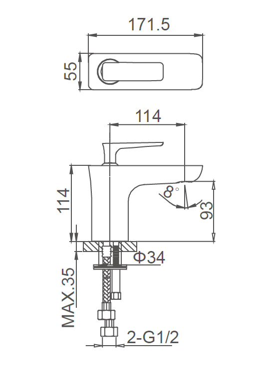 - Комплектация Смеситель / Гибкая подводка / Монтажный комплект