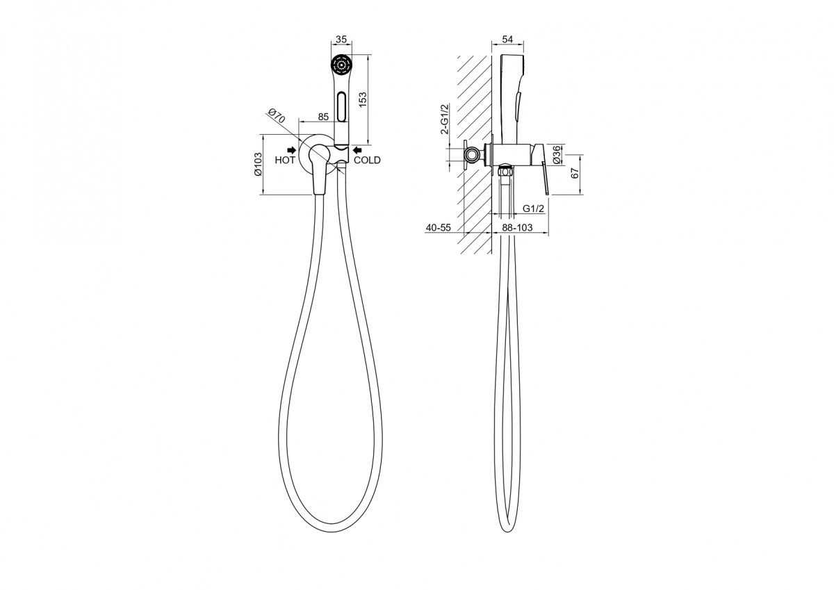• Гигиеническая лейка оснащена нажимным механизмом для остановки потока воды
