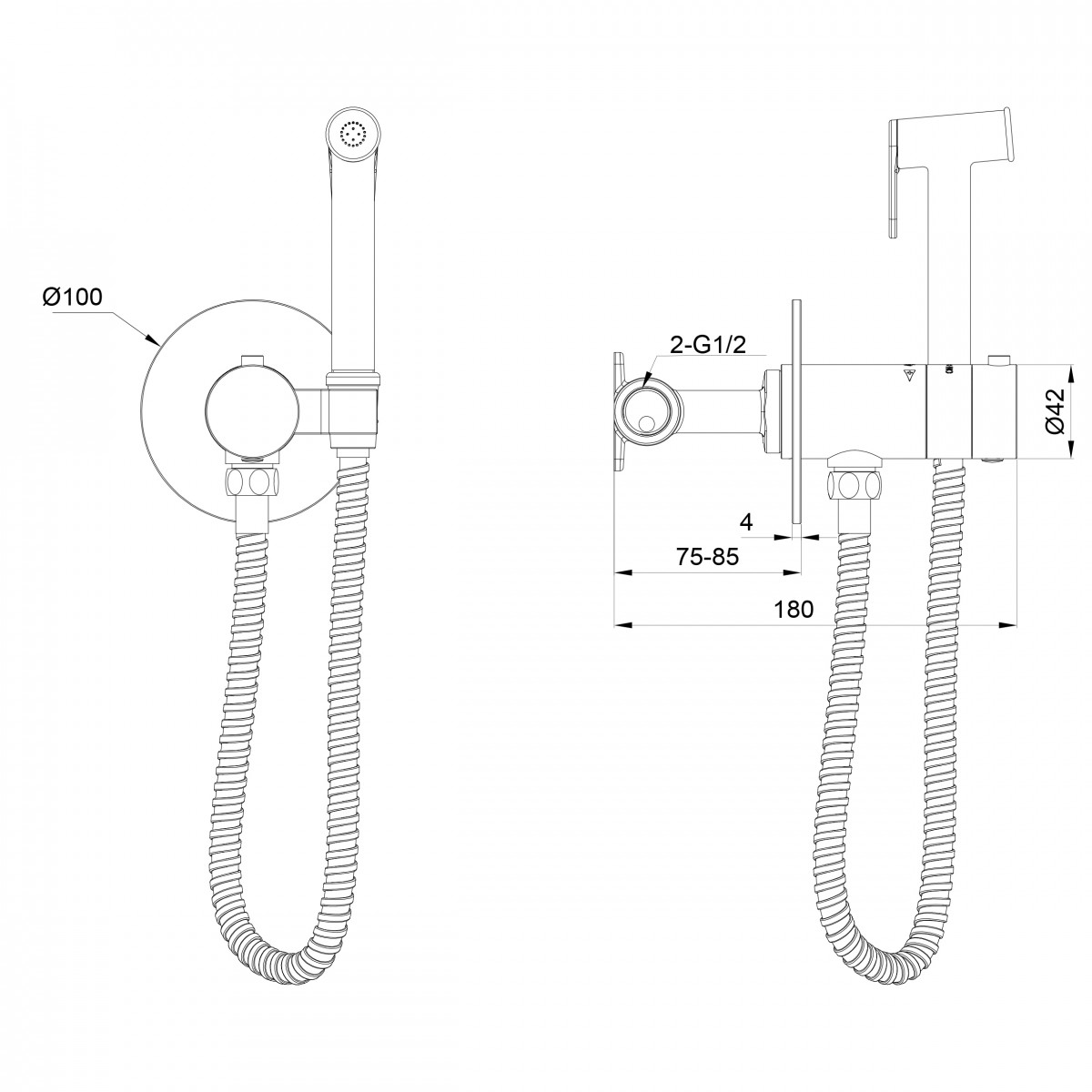 - Комплектация Смеситель / Душевой шланг / Держатель для душа / Лейка гигиенического душа / Монтажный комплект