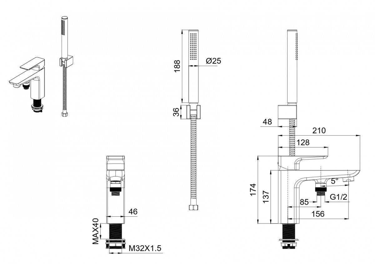 • встроенный девиатор, автоматически переключает поток с душа на излив при закрытии воды