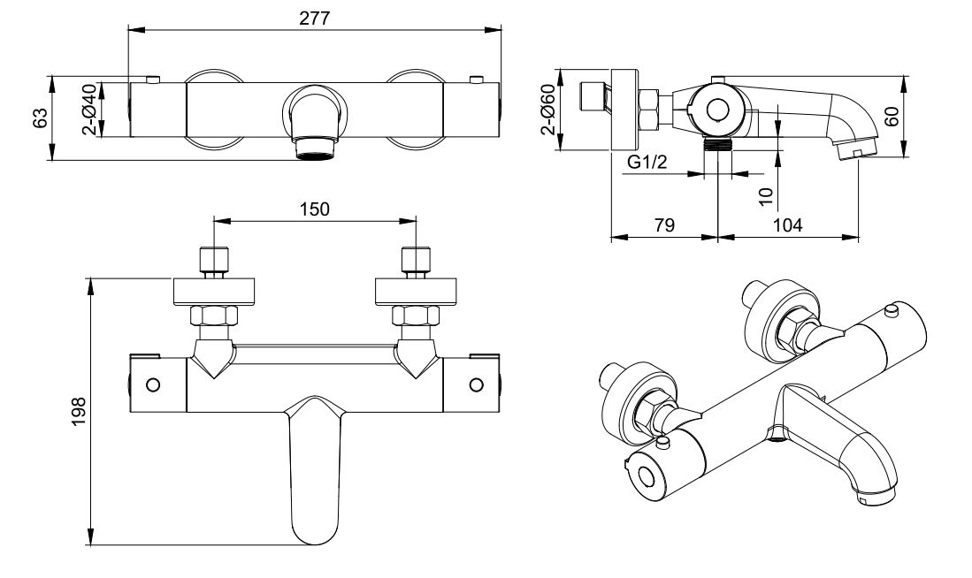 | Межцентровое расстояние (мм): 150 |