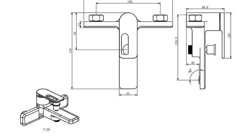 Смеситель для ванны с душем Black & White Gravity 9101С (хром)