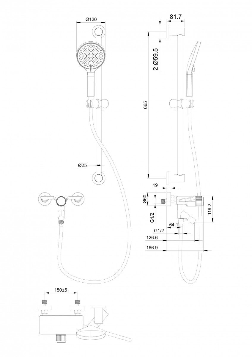 - Длина шланга, см 150