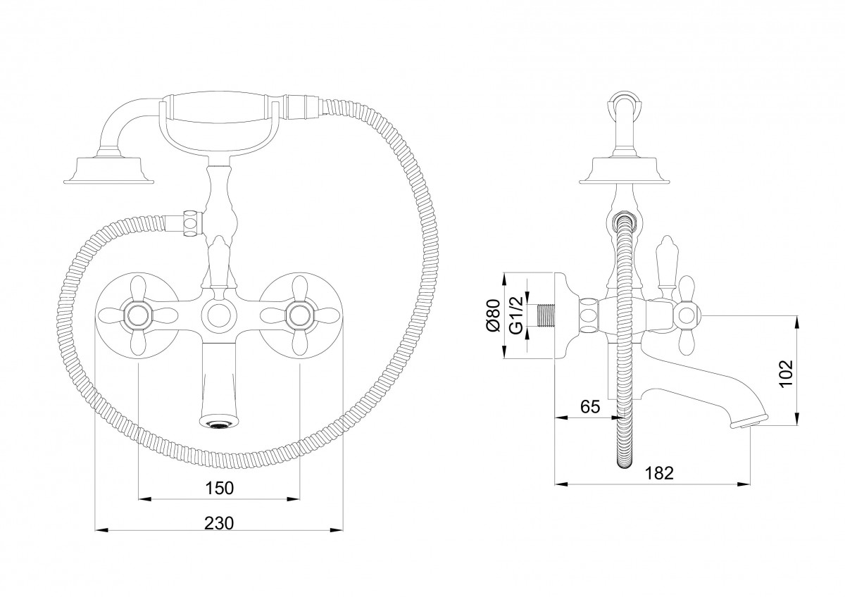 Смеситель для ванны с душем Wonzon & Woghand RETRO WW-88639020-BGM (тёмный графит)