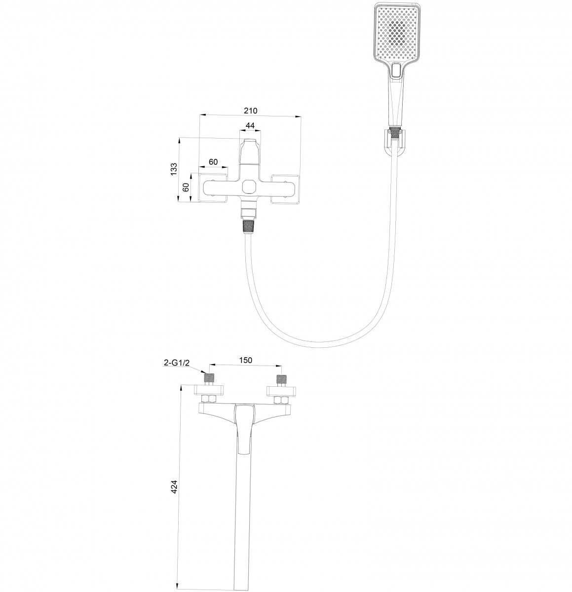 - Комплектация Смеситель / Душевой шланг/ Держатель для душа / Душевая лейка / Эксцентрики / Монтажный комплект