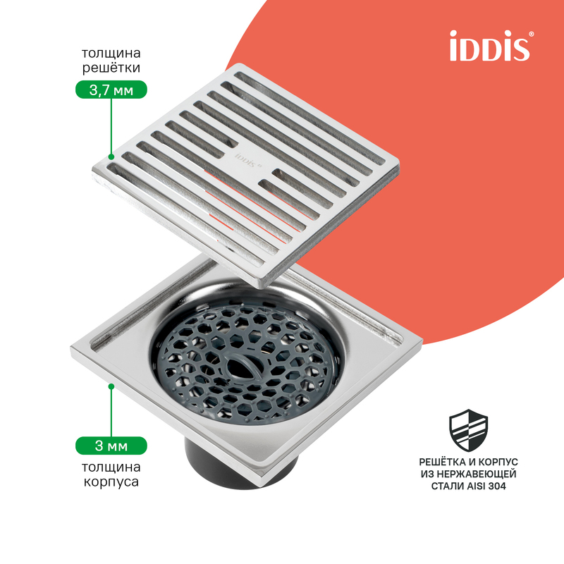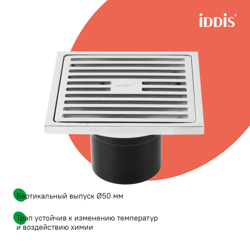 Душевой трап IDDIS® в цвете хром с утяжеленной решеткой и вертикальным выпуском предназначен для отведения воды в канализацию из зоны принятия душа. Он заменит традиционные поддоны с бортиками, предлагая универсальный дизайн решетки и возможности для создания стильного интерьера ванной комнаты. Размер решетки — 10x10 см; подходит для плитки толщиной до 12 мм.